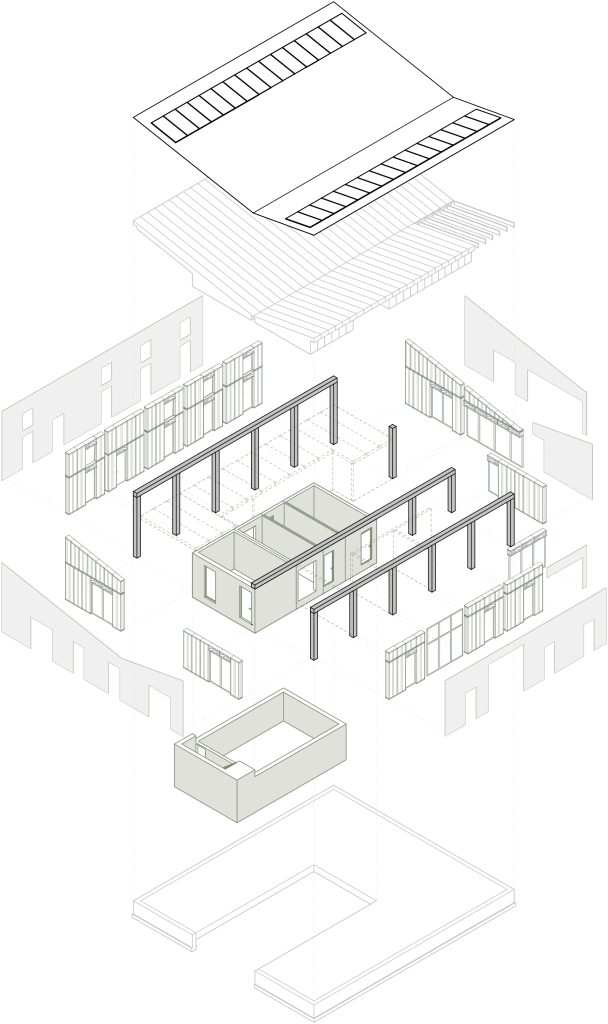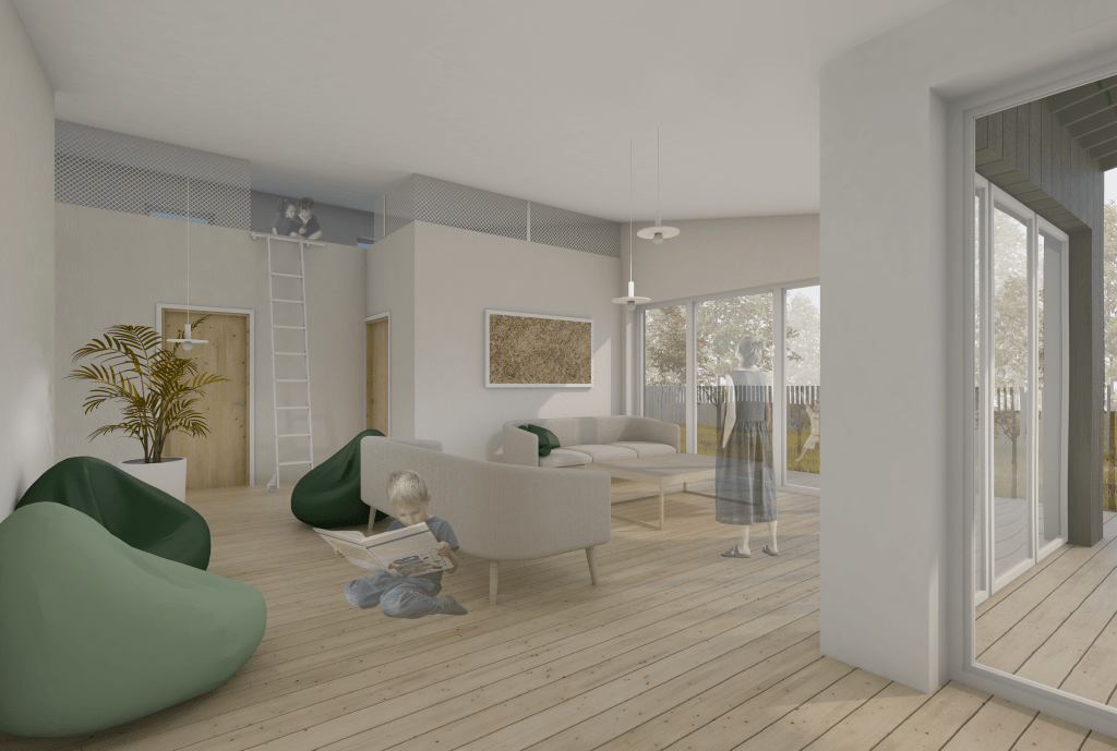 Probably the biggest lesson was the design of an actual prefabricated house. What would be the most compact and optimal solution, at the same time architecturally exciting and fitting in the context. We realised that designing a prefabricated house in a pattern system involves first solving the construction and only then dealing with the spatial planning. We certainly gained a lot of knowledge about space planning for people with reduced mobility, which will be useful in future work. We can now apply what we have learnt in our own research and find the best solution for designing a prefabricated straw house.