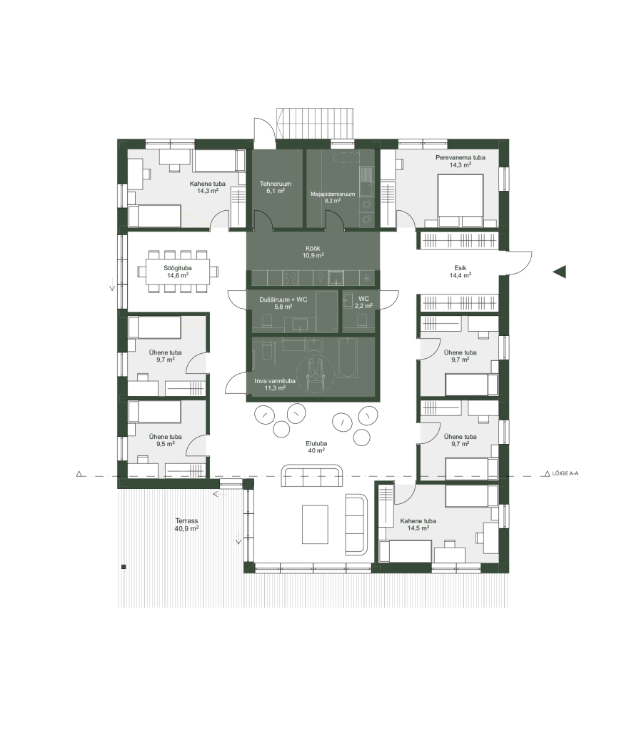 After a long spring semester, we didn’t intend to rest, but decided to take part in an architectural competition organised by ESTDEV. We had already been in contact with ESTDEV before, as we had won their special prize in the Garage48 competition. As soon as we saw the competition’s brief, we realised that it was related to our research topic and we immediately started working on a solution. The aim of the competition was to find a suitable solution for an factory produced family house – SOS Children’s Village typology, which could be used as a model project in Ukraine. The building was designed to densify the urban space between existing housing and to fit into different environments. It was important to create a high quality and homelike environment for children and surrogate parents affected by the war in Ukraine. The theme also overlapped with our earlier SOS Children’s Village concept, which we created for Ukraine in the Garage48 competition
