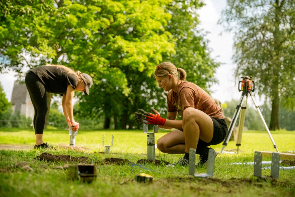 Foundation construction began first by measuring out the exact location, and once the location was in place, we began measuring out the contour of the installation. Two important tools in the foundation construction were a power drill and a laser level. The next step was screwing in the holes, which was quite a time-consuming job as the foundation still had to be properly leveled. For this, we had a levelling device to get the screwdriver to the same height. The screeds were then fitted with the brackets, which in turn we fitted the panels to the next day.