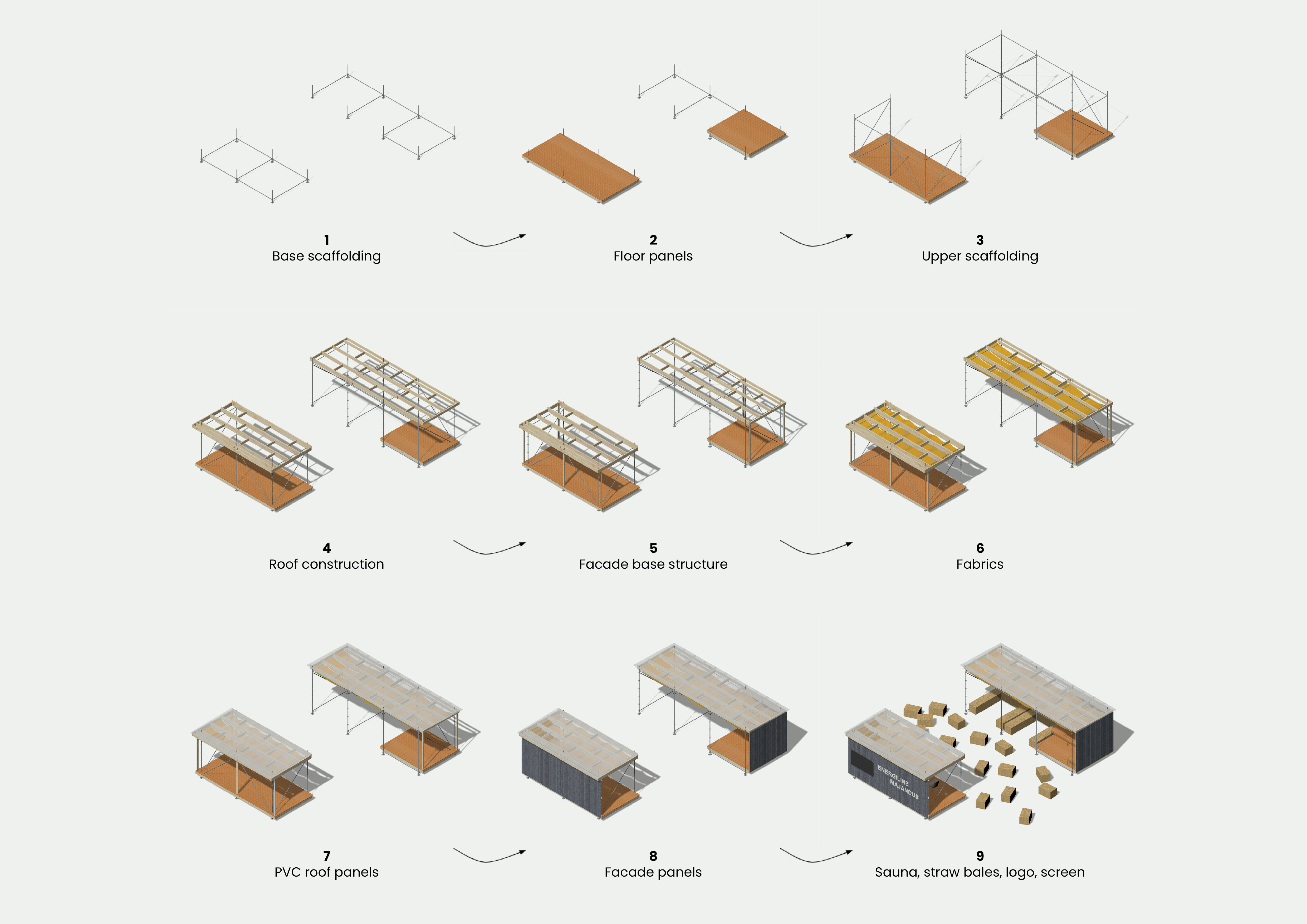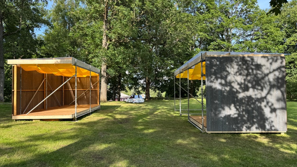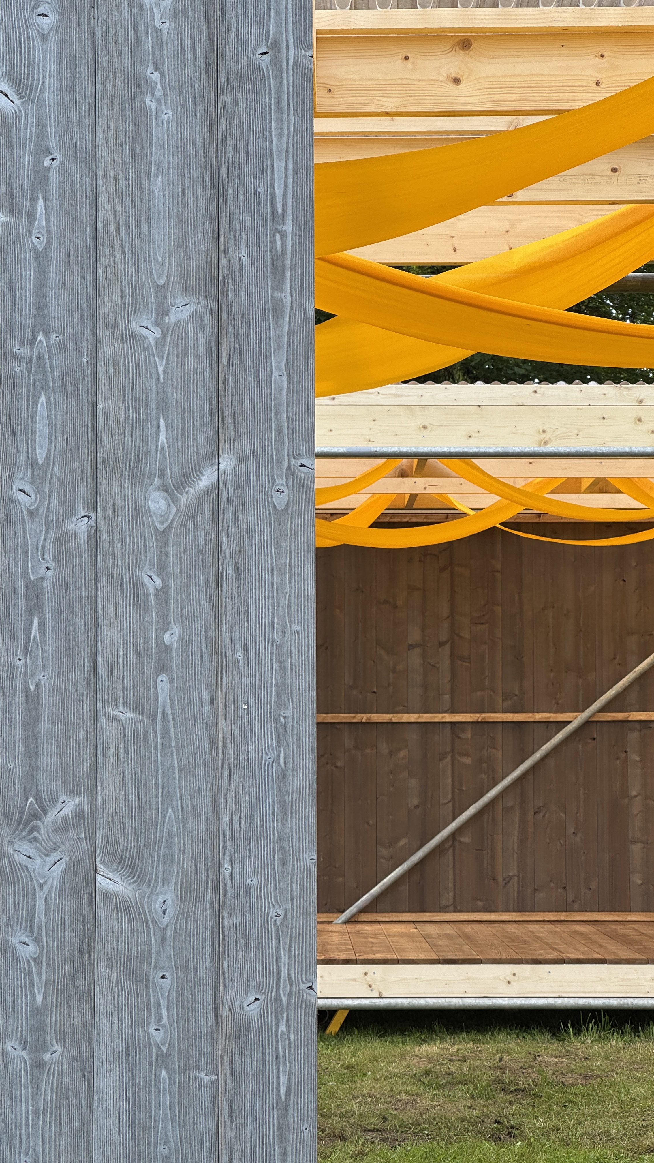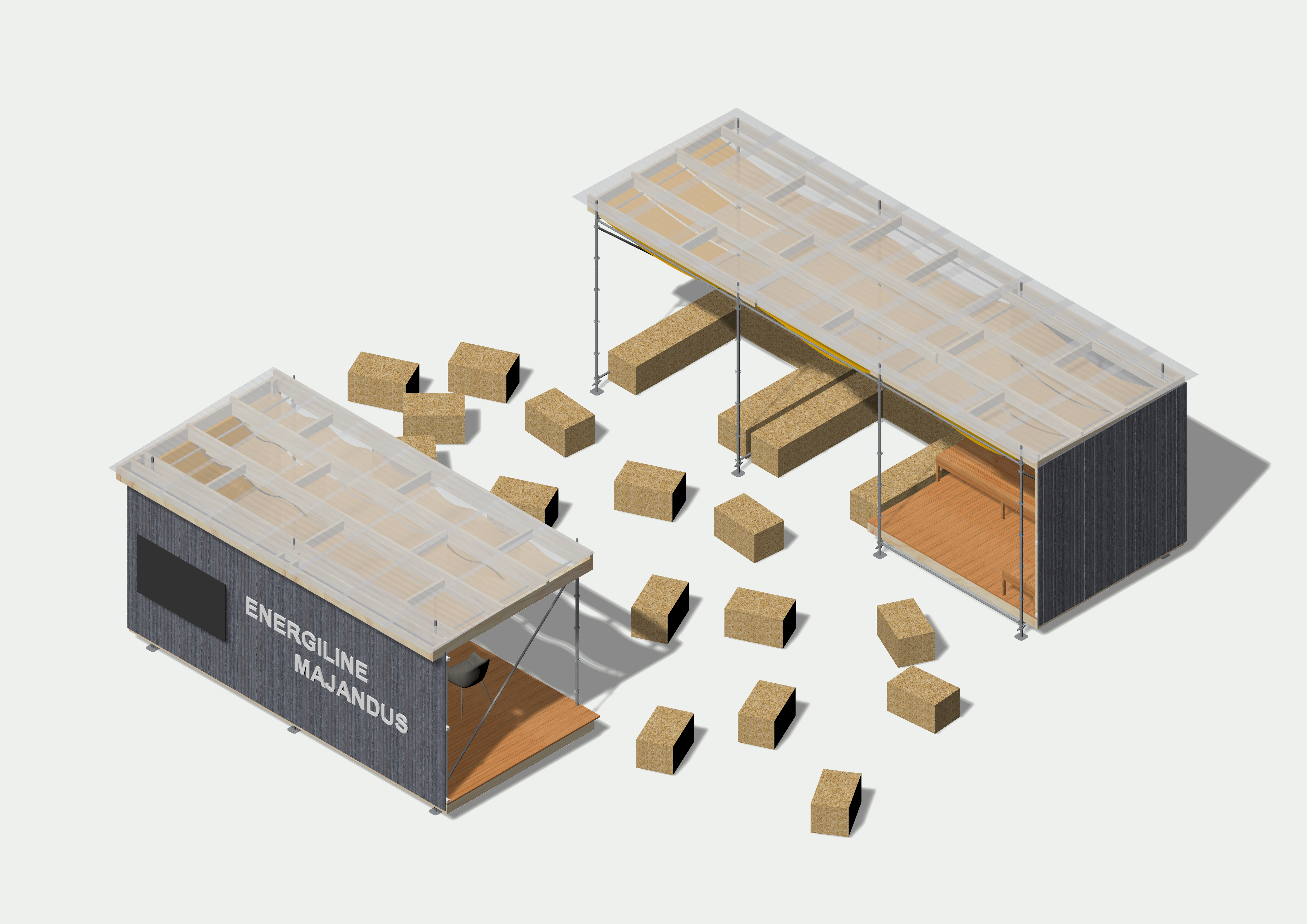 For the seating area, straw bales were used. They create a contrast with the precisely detailed wooden surfaces, making the spatial experience layered – where comfort and naturalness coexist.